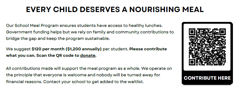 All contributions made will support the meal program as a whole. We operate on the principle that everyone is welcome and nobody will be turned away for financial reasons. Contact your school to get added to the waitlist.